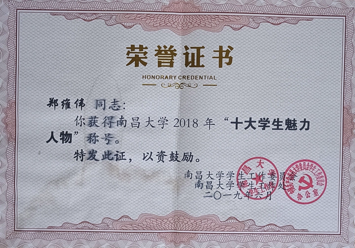 The 2018 Graduate Student "Top 10 Stars"Last updated on Dec 5, 2024Go to Project Site Image credit: NCU2019.6 南昌大学年度“十大学生魅力人物”RewardWeiwei ZhengPh.D. CandidateMy research interests include regional economics, industrial economics, and spatial econometrics theory & application.