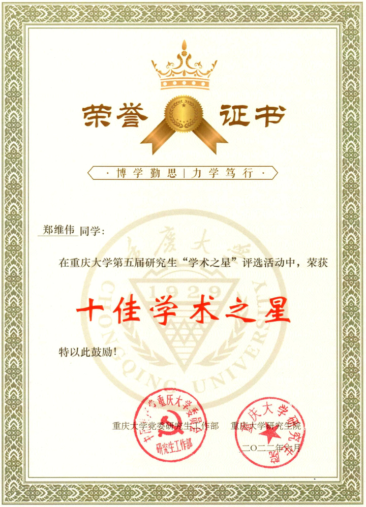 The 5th Postgraduate Student "Top 10 Academic Stars"Last updated on Nov 10, 2025Go to Project Site Image credit: CQU2022.6 重庆大学第五届研究生“十佳学术之星”AcademicWeiwei ZhengPh.D. CandidateMy research interests include regional economics, industrial economics, and spatial econometrics theory & application.