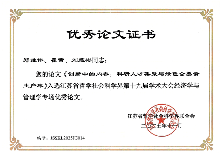 Outstanding Paper of the Special Session on Economics and Management of the 19th Academic Conference of Jiangsu Social SciencesLast updated on Nov 17, 2025Go to Project Site Image credit: NJU2025.11 江苏省社科界第十九届学术大会经济学与管理学专场(优秀论文)AcademicWeiwei ZhengPh.D. CandidateMy research interests include regional economics, industrial economics, and spatial econometrics theory & application.